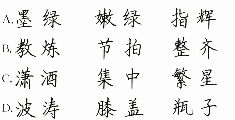2.阳阳的词语默写获得了满分,下列书写可能出自阳阳之手的一项是( )
