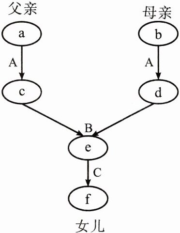 (2)A表示父母分别产生生殖细胞的过程,生殖细胞c、d分别叫______和______。它们的染色体数为______条,比a、b减少______。