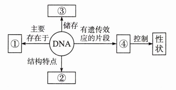 14. 下图是关于遗传知识的概念图,图中①~④依次为( )