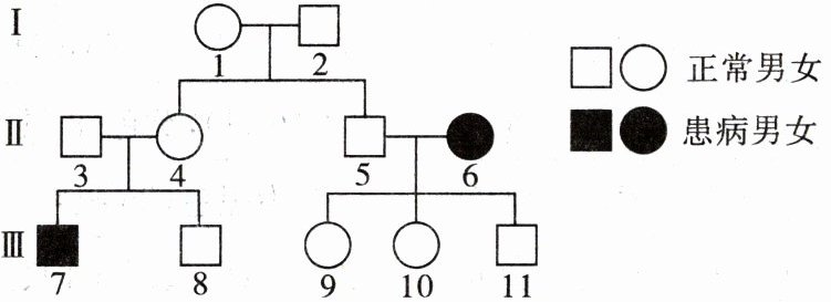 D 3号个体和4号个体都正常,但他们有一个患病的儿子,说明该遗传病为隐性遗传病。8号个体是男孩,性染色体组成是XY,其中X染色体来自4号个体(母亲),Y染色体来自3号个体(父亲);4号个体的性染色体组成为XX,分别来自1号个体和2号个体,所以8号个体的X染色体来自1号个体或2号个体。5号个体和6号个体再生一个小孩,该小孩不一定表现正常。假设控制该遗传病的基因为a,则正常基因为A。如果5号个体的基因组成是AA,则该小孩一定正常;如果5号个体的基因组成是Aa,则该小孩正常的概率为50%。