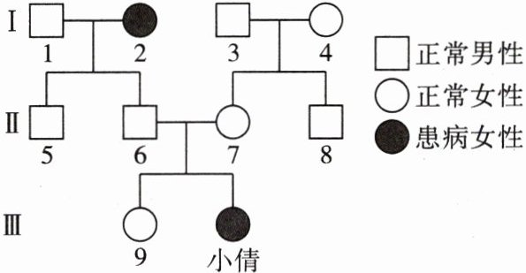 (1)小倩是患白化病的女孩,据图可以判断该病是隐性遗传病,依据是__________。父亲传递给小倩的性染色体是__________。