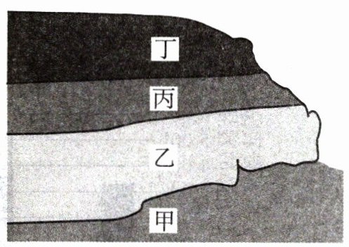 6. 右图中的甲、乙、丙、丁四个地层是按照地质年代由古老到晚近的顺序划分的。古生物学家发现:甲地层只有水生生物化石;乙地层的水生生物化石占多数;丙和丁地层的陆生生物化石越来越多。由此看出生物在生活环境方面的进化趋势是( )