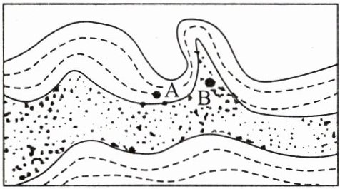 2. 在下图所示的地层中发现了A、B两种生物化石,下列观点正确的是( )
