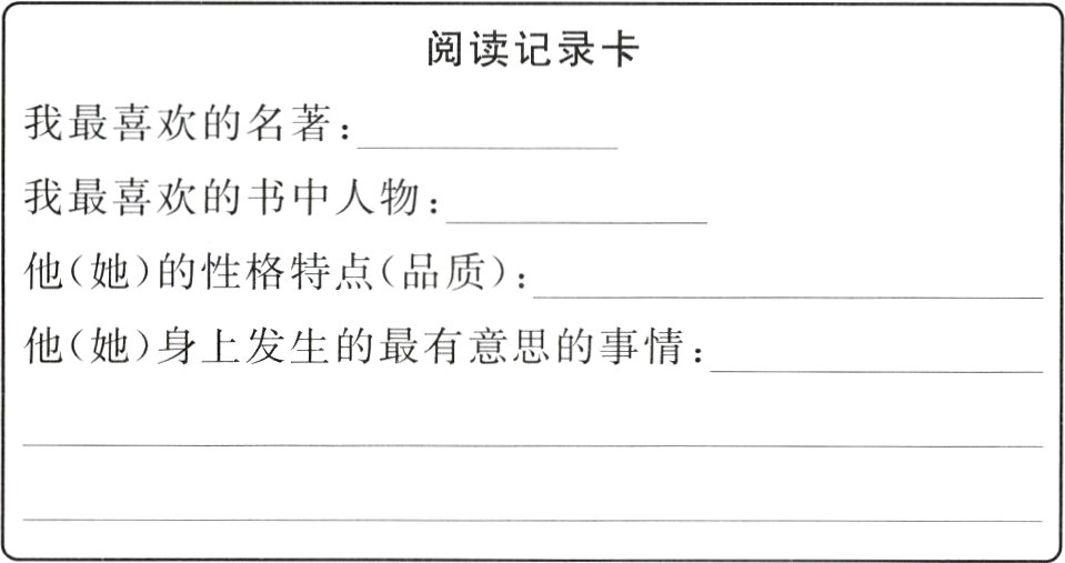 2. 根据自己阅读的中外古典名著,完成“阅读记录卡”。(4分)