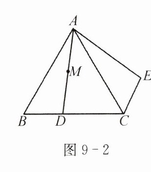 例1 如图9 - 2,在等边三角形ABC中,点D在边BC上,△ABD按逆时针方向旋转后得△ACE.