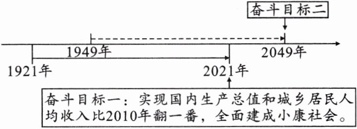 2. 下图呈现的是中国共产党确立的“两个一百年”奋斗目标。图中“奋斗目标二”指的是 ( )