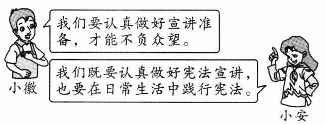 【宪法宣传】小安和小徽被推举为“宪法小讲坛”的宣讲员,他们交流了各自的看法(见题图):
