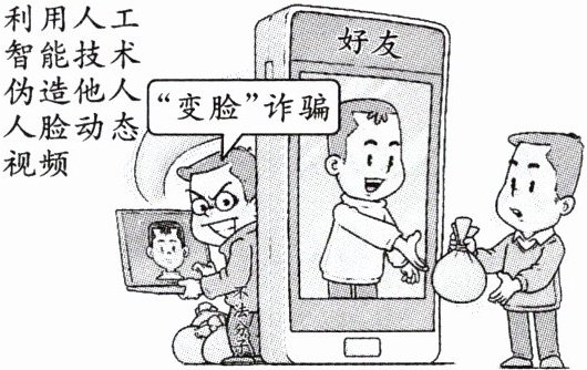 5.(2024·乐山中考)随着科学技术的发展,一些不法分子利用AI技术模仿、伪造他人的声音、面孔、视频等信息进行诈骗(如下图所示)。对此类行为认识正确的是 ( )