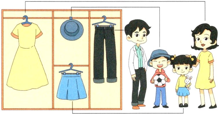 Hello, I’m Mike. Look at the clothes. They are beautiful and nice. Look! That is a skirt. It’s Lily’s. This is a hat. It’s John’s. It’s blue. This dress is Lucy’s. It’s pink. Are these pants Jim’s? No, they aren’t. They are my pants. They are brown. Now, let’s put them on and play!