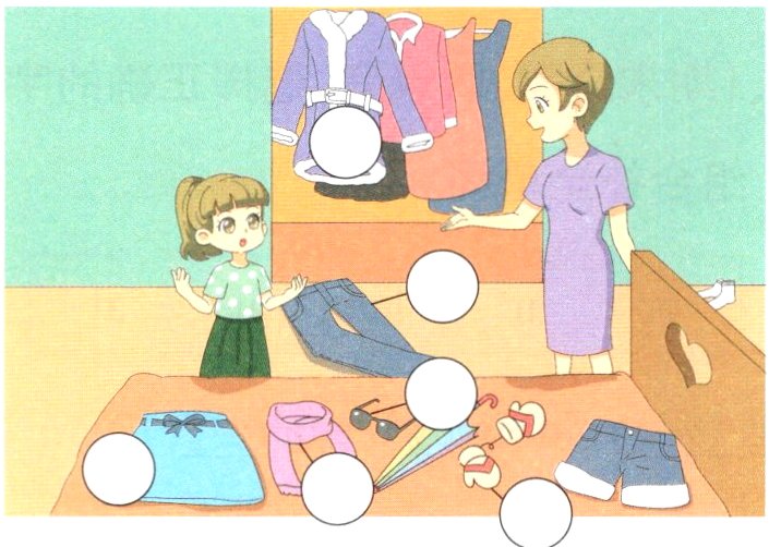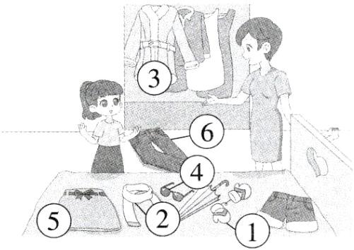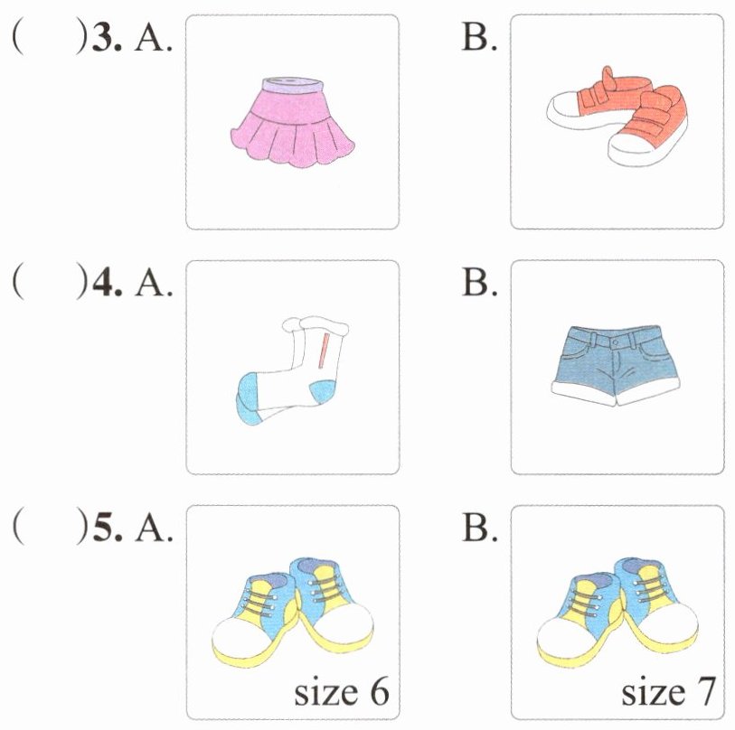 There are many clothes in my closet. The __________ is green. I like it very much. The __________ are beautiful. They are pink. I like them, too. I can wear them on cold days. The __________ are cool. I can wear them on sunny days. I like this __________ very much, but it is too short. So I want to buy a new one. And I want to buy new __________.