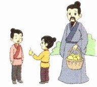 One day his father buys some pears. His father picks one of the biggest pears and gives it to Kong Rong. But Kong Rong shakes his head and picks out the smallest one.