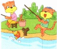 Five minutes later, she caught a big fish and she was very happy. Then Kitty and her mother went back home. They cooked fish for dinner.