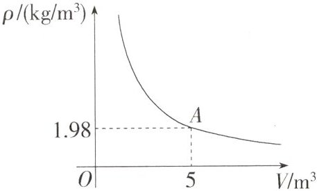 8. 跨物理·密度 (2023福建福州金山中学三模) 密闭容器内有一定质量的二氧化碳, 当容器的体积V(单位:m³) 变化时, 气体的密度ρ(单位:kg/m³) 随之变化. 已知密度ρ与体积V是反比例函数关系, 其图象如图所示, 当V = 5时,ρ = 1.98. 观察图象, 下列说法不正确的是(M8217004) ( )