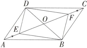 因为四边形ABCD是平行四边形,所以OA = OC=$\frac{1}{2}$AC = 6,OB = OD=$\frac{1}{2}$BD = 4,所以OE = OF,所以四边形BEDF是平行四边形。
