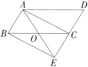 因为CE = DC,所以AB = CE,所以四边形ABEC是平行四边形,所以OA = OE,OB = OC。