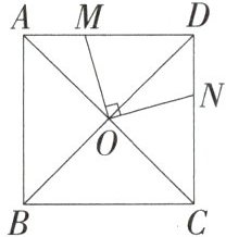 因为四边形 $ABCD$ 是正方形,所以 $DB$ 平分 $\angle ADC$,$\angle ADC = 90^{\circ}$,则 $OE = OF$,$\angle EOF = 90^{\circ}$。