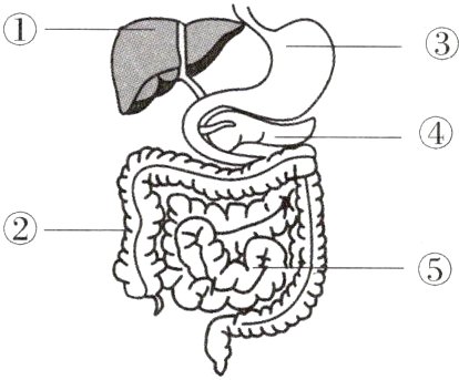 D ①肝脏分泌的胆汁不含消化酶,A错误;蛋白质在③胃内被初步分解为多肽,B错误;④胰腺分泌的胰液会通过导管流入⑤小肠,②为大肠,C错误;⑤小肠是消化和吸收的主要场所,D正确。