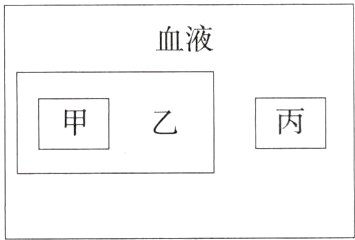 血液包括血浆和血细胞,血细胞包括红细胞、白细胞和血小板,图中血液包括丙血浆和乙血细胞,甲血小板属于乙血细胞。