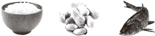 米饭中含有丰富的淀粉等糖类,花生中含有大量的脂质,鱼中含有较多的蛋白质。