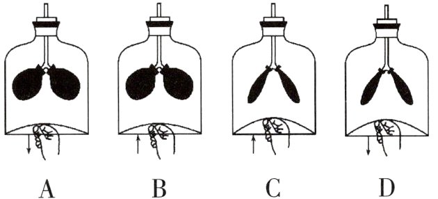 D.向下拉橡皮膜,模拟膈肌收缩,液面B下降