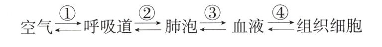 6.核心素养·科学思维(2024河北衡水月考)如图表示人体内气体交换的过程,其中能发生气体扩散的是(B7233002) ( )
