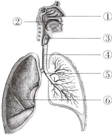 D 由题图可知,①为鼻,能对空气进行初步处理;④为气管,⑤为支气管,含细菌和灰尘的“痰”产生于气管和支气管的黏膜,A错误。④为气管,②为咽,B错误。②为咽,是气体和食物的共同通道,C错误。