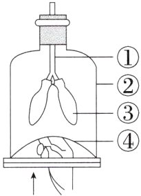 ①是由吸管制作而成的,表示呼吸系统的气管,A错误;手向上顶,表示膈顶上升,此时膈肌舒张,胸廓缩小,肺也随之回缩,肺内气体排出肺,完成呼气,B错误;瓶底的手松开,④模拟的膈肌收缩,膈肌顶部下降,D错误。