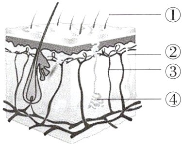 D 图示中①表示毛发,②代表神经末梢,③代表毛细血管,④代表汗腺。