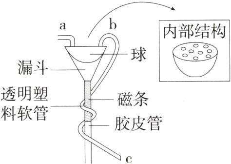 (2)套在漏斗下端的胶皮管模拟的是________________,粘在胶皮管内的磁条模拟的是____________________作用。