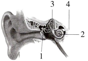 9.核心素养·生命观念 (2024河北赵县期中,23,★☆☆)如图为人耳的部分结构示意图。有关叙述错误的是(B7235003) ( )