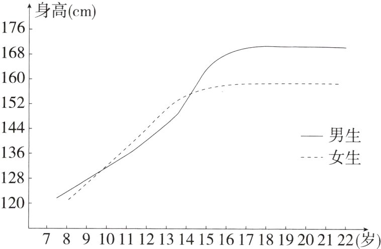 1.跨数学·曲线图(2023河北雄县月考)从下图可以看出,进入青春期的青少年 ( )
