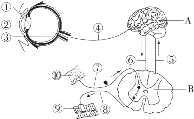 (2)运动员接到球后,将其准确送入球门,这一反射属于______(填“非条件”或“条件”)反射,其神经中枢位于[ ]。