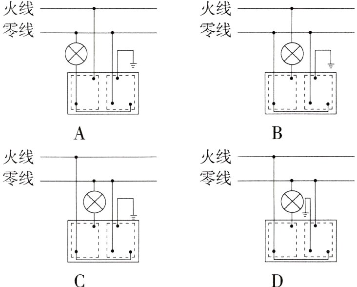 4. 现在一般标准住宅户内配电系统都使用了空气开关、漏电保护器、三孔插座等设备,有一配电系统如图所示。其中各个设备的特征是(P9203001)( )