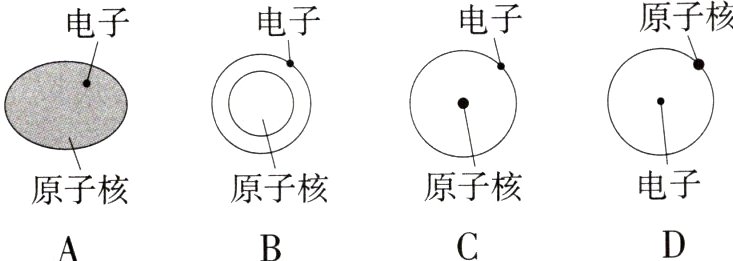 C 氢原子是由原子核和一个电子构成的,原子核位于原子的中心,质量很大,但体积很小,电子的质量很小,受原子核的吸引,绕核做高速运动,运动的空间很大。故选C。