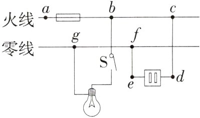 10.新课标.科学推理(2024河南信阳三模)如图所示的家庭电路中,开关S闭合后,灯泡不能发光,用验电笔检测插座的两孔,氖管均发光,故障原因可能是(P9204001) ( )
