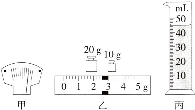 (2)将天平调平衡后,先测空烧杯的质量。天平平衡时,右盘中的砝码和称量标尺上游码的位置如图乙所示,则空烧杯的质量为________g。