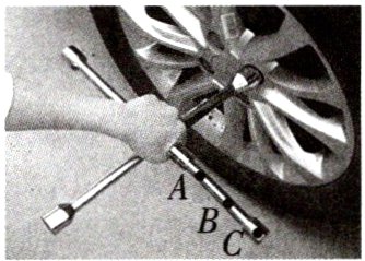 解析 用扳手拧螺丝时,阻力和阻力臂一定,在A点施力时,动力臂最小,动力最大,在C点施力时,动力臂最大,动力最小,所以在C点施力更容易拧动螺丝。