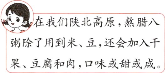 在我们陕北高原,熬腊八粥除了用到米、豆,还会加入干果、豆腐和肉,口味或甜或咸。