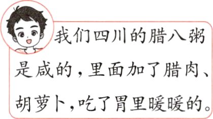 我们四川的腊八粥是咸的,里面加了腊肉、胡萝卜,吃了胃里暖暖的。