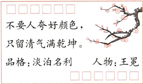 不要人夸好颜色,只留清气满乾坤。 品格:淡泊名利 人物:王冕