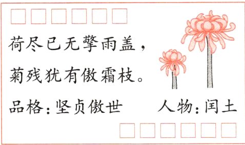 荷尽已无擎雨盖,菊残犹有傲霜枝。 品格:坚贞傲世 人物:闰土