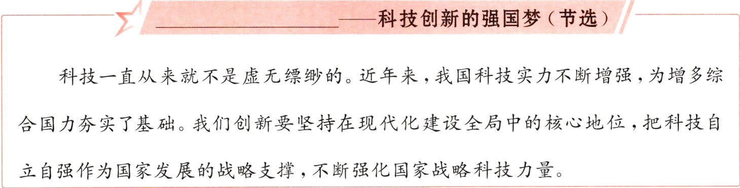 科技 从来就不是虚无缥缈的。近年来,我国科技实力不断增强,为 提升综合国力夯实了基础。我们 要坚持创新在现代化建设全局中的核心地位,把科技自立自强作为国家发展的战略支撑,不断强化国家战略科技力量。