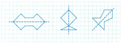 4 分别画出下面三个轴对称图形的另一半。