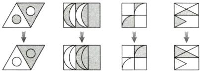 解析 本题通过平移把不规则图形转化为规则图形。仔细观察每个图形,想办法把涂色部分平移到一起,就能看出涂色部分所占的份数。