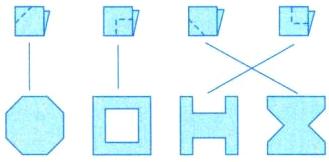 4 拿四张正方形纸,按照如下方式折一折,剪一剪。把不同剪法和展开后分别得到的图案连一连。