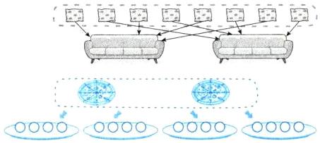 解析 由题图可知,有2张沙发,把8个抱枕平均放在2张沙发上,即把8个抱枕平均分成2份。如下图,动手分一分可知,每份是4个,即每张沙发上放4个抱枕。