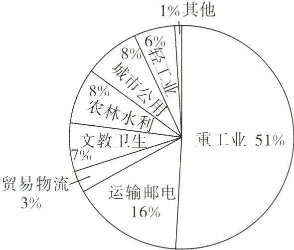 2 跨学科 数据分析 数据统计往往蕴含着丰富的历史信息。下图是我国“一五”计划的基建投资比重分配情况,该数据反映了“一五”计划期间( )