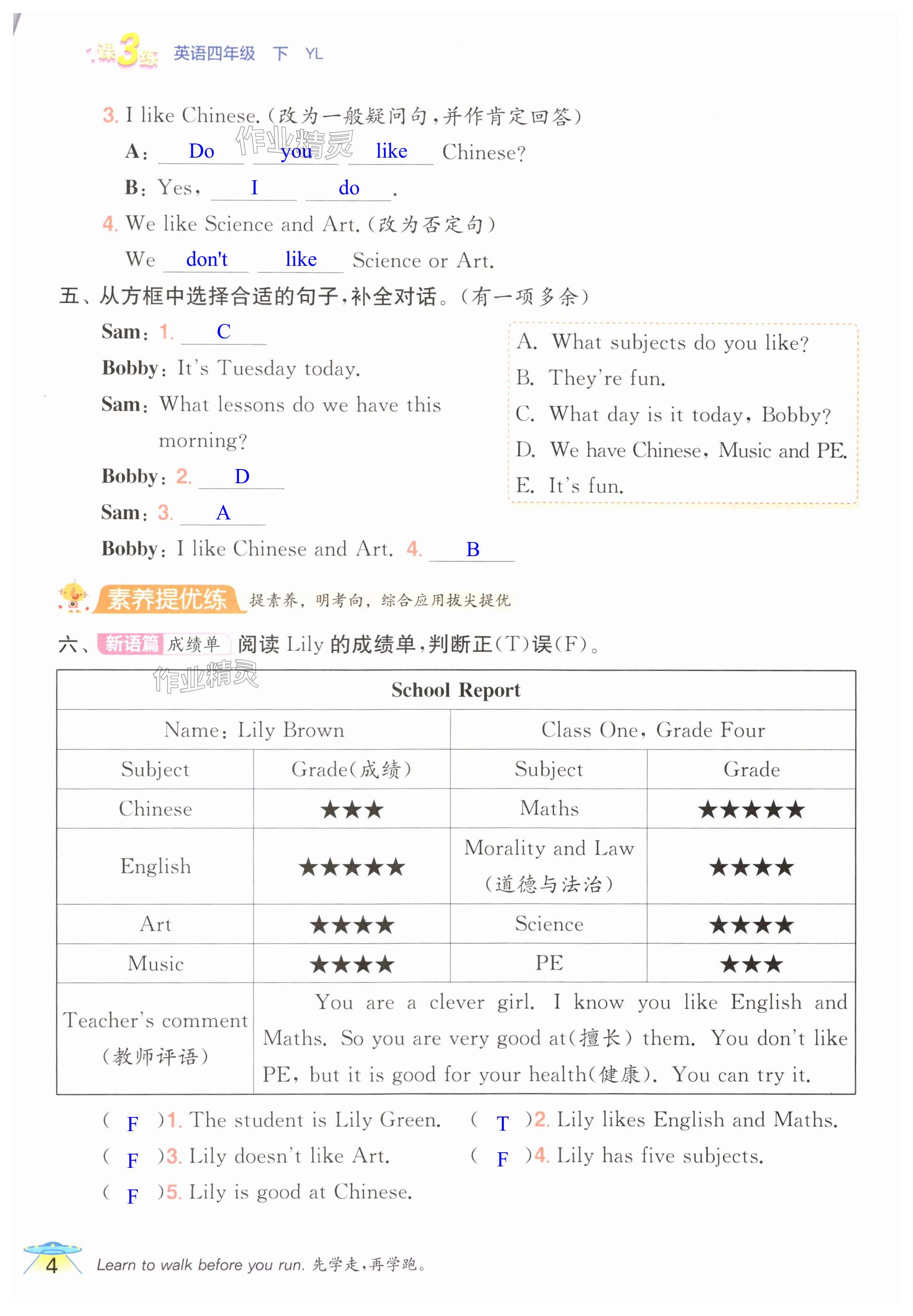 注:目前有些书本章节名称可能整理的还不是很完善,但都是按照顺序排列的,请同学们按照顺序仔细查找。练习册 2025年1课3练全优作业本四年级英语下册译林版 答案主要是用来给同学们做完题方便对答案用的,请勿直接抄袭。