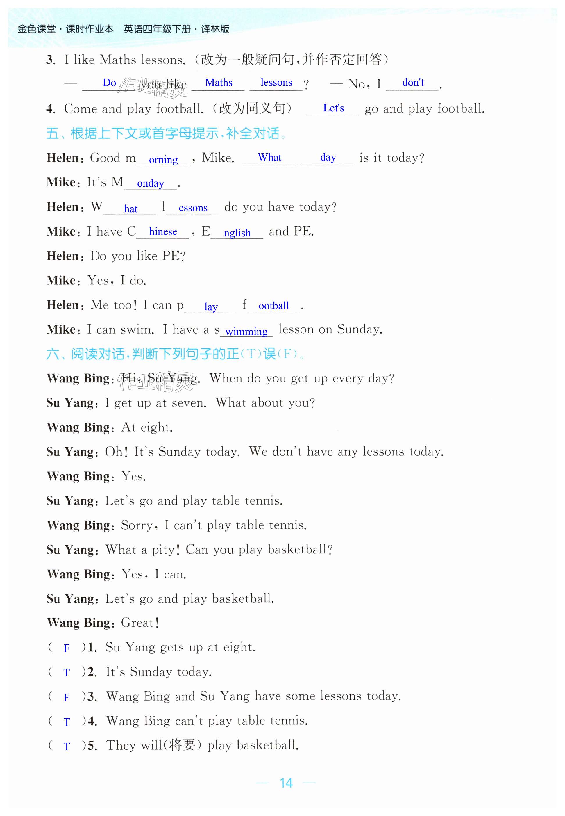 注:目前有些书本章节名称可能整理的还不是很完善,但都是按照顺序排列的,请同学们按照顺序仔细查找。练习册 2025年金色课堂课时作业本四年级英语下册江苏版 答案主要是用来给同学们做完题方便对答案用的,请勿直接抄袭。