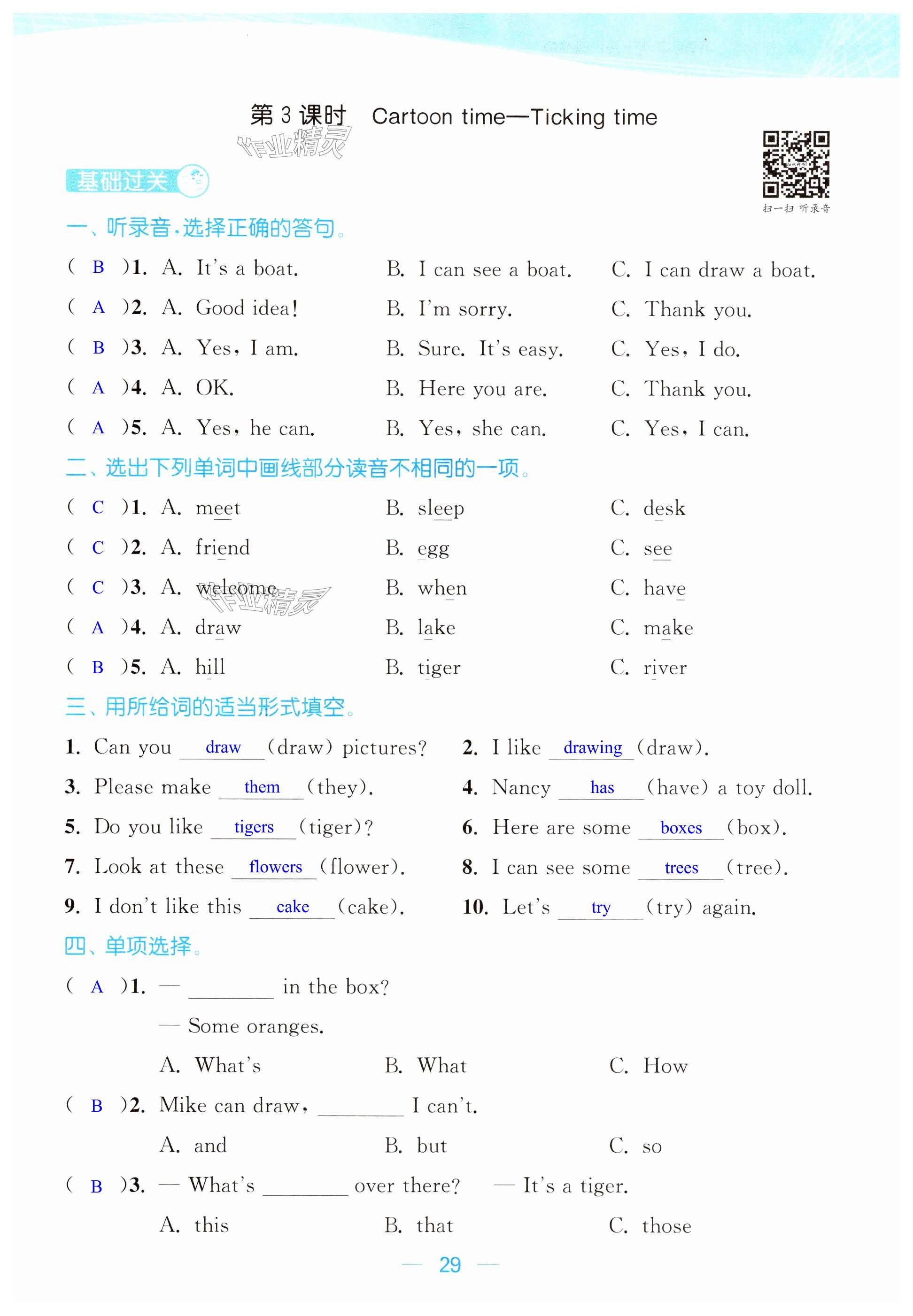 注:目前有些书本章节名称可能整理的还不是很完善,但都是按照顺序排列的,请同学们按照顺序仔细查找。练习册 2025年金色课堂课时作业本四年级英语下册江苏版 答案主要是用来给同学们做完题方便对答案用的,请勿直接抄袭。